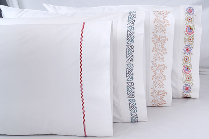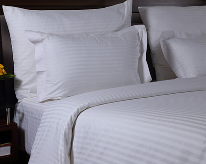 100% Cotton Bed Sheets from 180 TC to 800 TC in White and Dyed Stripes, Dobby and Jacquard Designs with value additions.